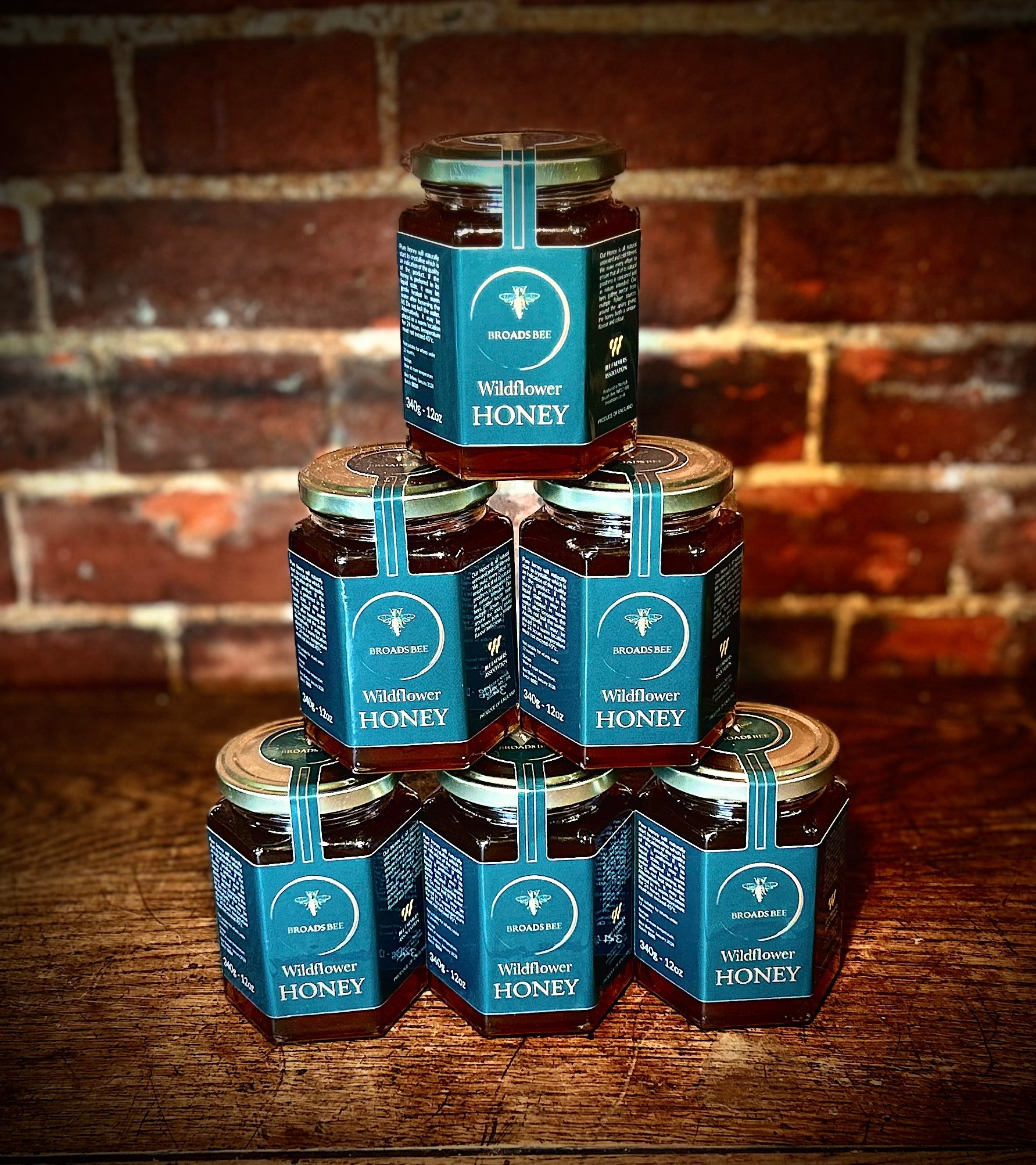 Our Wildflower Honey is collected by our bees after the Spring Honey has been pulled from the hives. This means that it's a mixture of all kinds of forage depending on what has been flowering and offering nectar in our Norfolk Broads area. The honey is cold filtered to remove particles of wax etc, but we leave in all the good stuff like the dozens of different pollen types which the bees will have found.